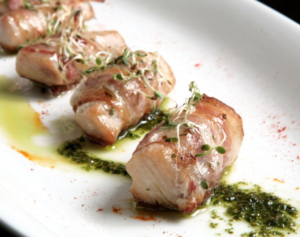 Corte el pescado en 9 porciones de aprox. 1.5 a 1.75 oz. Envolver cada trozo de pescado en tocineta, hasta que queden completamente cubiertos. Colocar en refrigerador por 1 hora para fusionar el sabor del pescado con la tocineta.