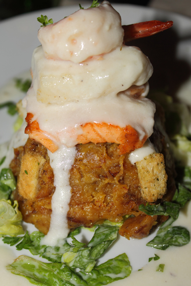 Su segundo salón es el comedor donde nos comentaron los propietarios que planean tener unas noches de Café Teatro con actores del patio. constan con un salón privado para actividades. En la degustación nos recibieron con unas bandejas de cortes fríos y una crema que estaba bien buena. El plato principal fue un filete de basa y uno de salmón sobre una cama de Fufu cubano y como toque un camarón grande en el tope de la presentación, todo esto bañado en una salsa de queso blanco.