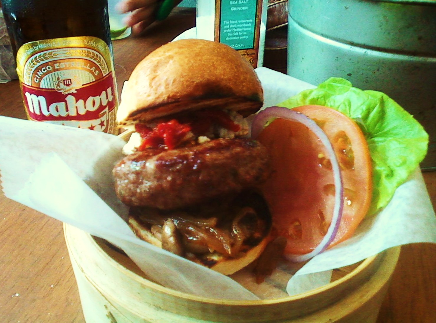 Reportaje por Andrea M Ayala Negrón. Un sábado, ya extrañando mi familia que no veía hace varias semanas, decido romper la rutina y acompañar a mi hermana, mi querida prima Coral y nuestras madres a dar un paseíto por Viejo San Juan a ver las galerías de arte, artesanías en las calles y en busca de unas cervezas y una rica comidita en la tarde. Comidita para mi por que era la que faltaba de comer. Mi tía me recomendo ir a El Grill, Hamberguera Sanjuanera, en la Calle San Sebastián. Es un lugar muy acogedor, donde puedes disfrutar de los interiores de la Calle San Sebastián y recibes aire fresco de afuera. Allí podrás saborear diferentes tipos de hamburguesas. Todo comienza desde una pizarra gigante donde puedes leer las diferentes alternativas para crear tu propia hamburguesa, también tienen otros entrantes como búfalo wings, papitas fritas “home made”, con diferentes ingredientes que le puedes añadir. Así que opte, por hamburguesa de carne de res, con cebollas caramelizadas, las cuales estaban exquisitas, le daban un saborcito dulce muy rico, junto con tomates rostizados, y queso azul. Lo más divino aún era el rico pan, horneado allí mismo. El servicio es importante, pues allí, fueron muy atentos y los precios súper accesibles. Al finalizar la comida compartí un shot de tequila, sal y limón, “el tequilaso”, con mis queridas acompañantes. CHEERS!