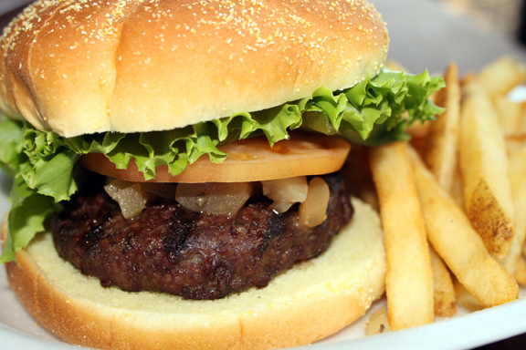 Luego de hablar un rato con Mickey me sirvieron los dos platos mas vendidos, carne ahumada y hamburger de res. Entre los dos platos mi favorito fue la carne ahumada. Es el unico lugar en el area con este plato. La carne estaba jugosa, con una textura suave y con un sabor ahumado espectacular. El plato estaba servido con tostones de pana. Debo decir que el mejor “side” para ordenar son las papas fritas. Estas son grandes, naturales y bien ricas. La carne del hamburger estaba preparada termino medio-cocido con cebolla salteada, lechuga y tomate dentro de pan con semillas de maíz. La carne tenia buen sabor y la lechuga y tomate estaban frescos. De postre nos trajeron un cupcake de espinaca. Soy fan numero uno de los cupcakes el frosting es de cream cheese dulce. El cupcake no sabe a espinaca, el sabor es un cross over entre un cupcake de vainilla y un cupcake de zanahoria con walnuts. Yum! Según me contó Mickey los cupcakes son hechos por la mamá de su sobrino y gerente Emanuel.