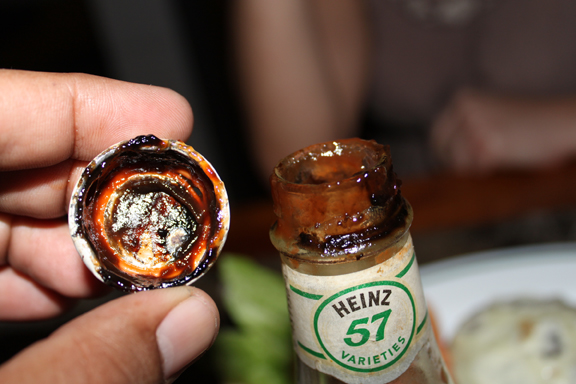 churrasco duro y gomoso, que se te iba en cada bocado y a mitad de sándwich te encontrabas que solo tenias el pan, la lechuga y el tomate, pensando todavía porque rayos tuve que parar aquí. Pedí el ketchup y cuando me traen aquella botella que se veía viejísima, que la abro y la tapa tenia hasta moho, se me quiera caer la quijada.
