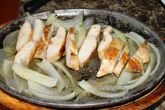 Llegarón las fajitas de Molly que de verdad era para levantarse e irse. En el plato de hierro para que se supone que vinieran con un sonido Sizziling de caliente, lo que se seguía escuchando era el mar y el plato mas frío no podía estar. un plato con unas tortillas y uno con una mezcla de lechuga iceberg con pedazos de tomate y queso rayado por encima. Un Hamburguer con el queso suizo derretido y setas de lata bien colocadas y tiesas en su cama de imitación de suizo pasma. Mi sándwich de churrasco con tiras de