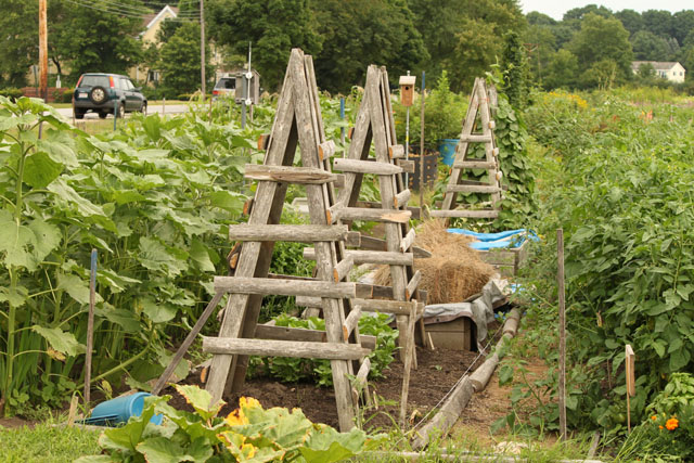 Este es un ejemplo de un jardín comunitario donde cada individuo de la comunidad puede aplicar para un lote de tierra fértil. Este lote es concedido por el municipio con el consentimiento de que se trabaje y se elabore un huerto. Cada lote de alrededor de una o dos cuerdas es segregado entre los residentes participantes de cada comunidad.